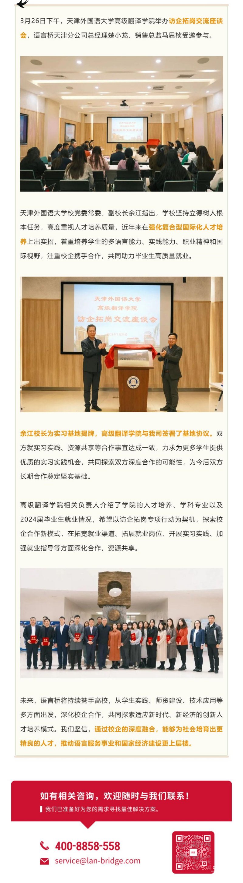 語言橋與天津外國語大學高級翻譯學院簽約校企合作實習基地