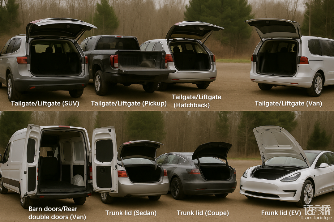 總而言之,盡管Tailgate/Liftgate與Trunk lid都表示用于保護車輛后部并提供進入存儲區域的通道的部件,但其設計和功能因車輛類型和市場標準存在顯著差異,因此在使用英文名稱時需加以區分。